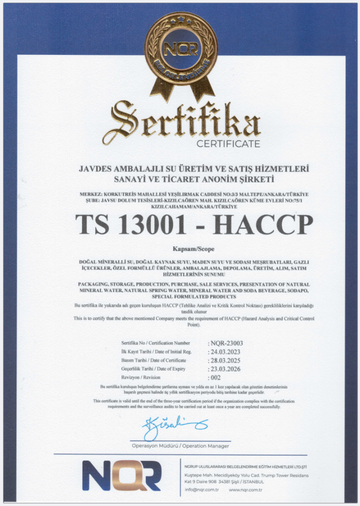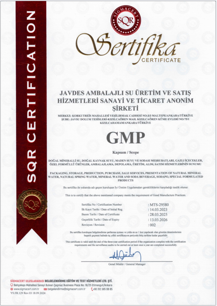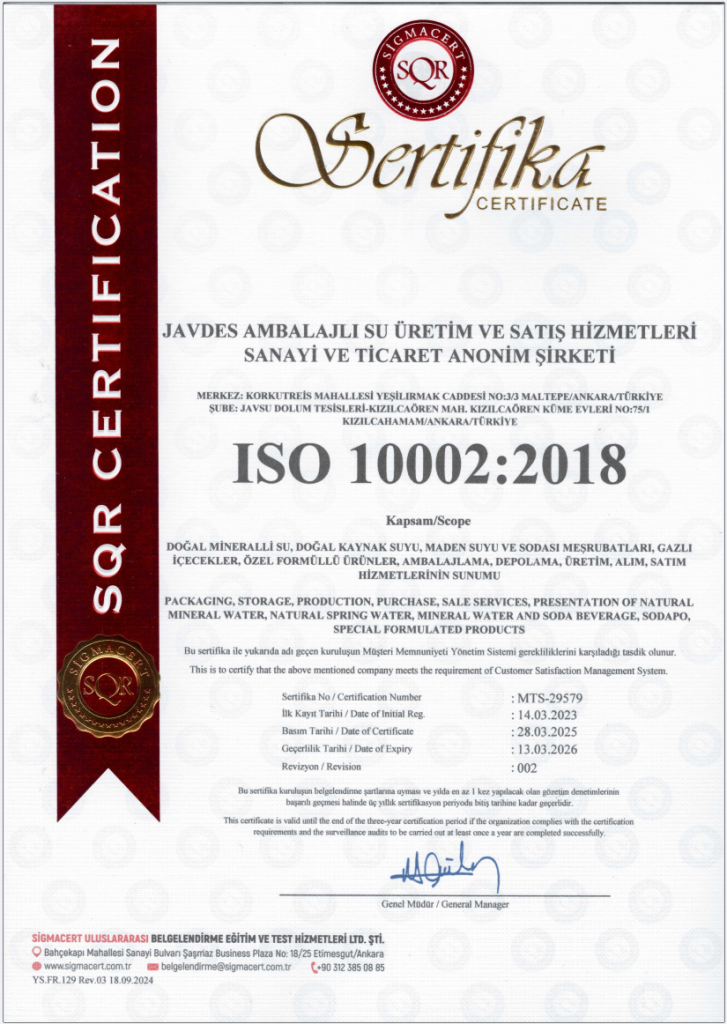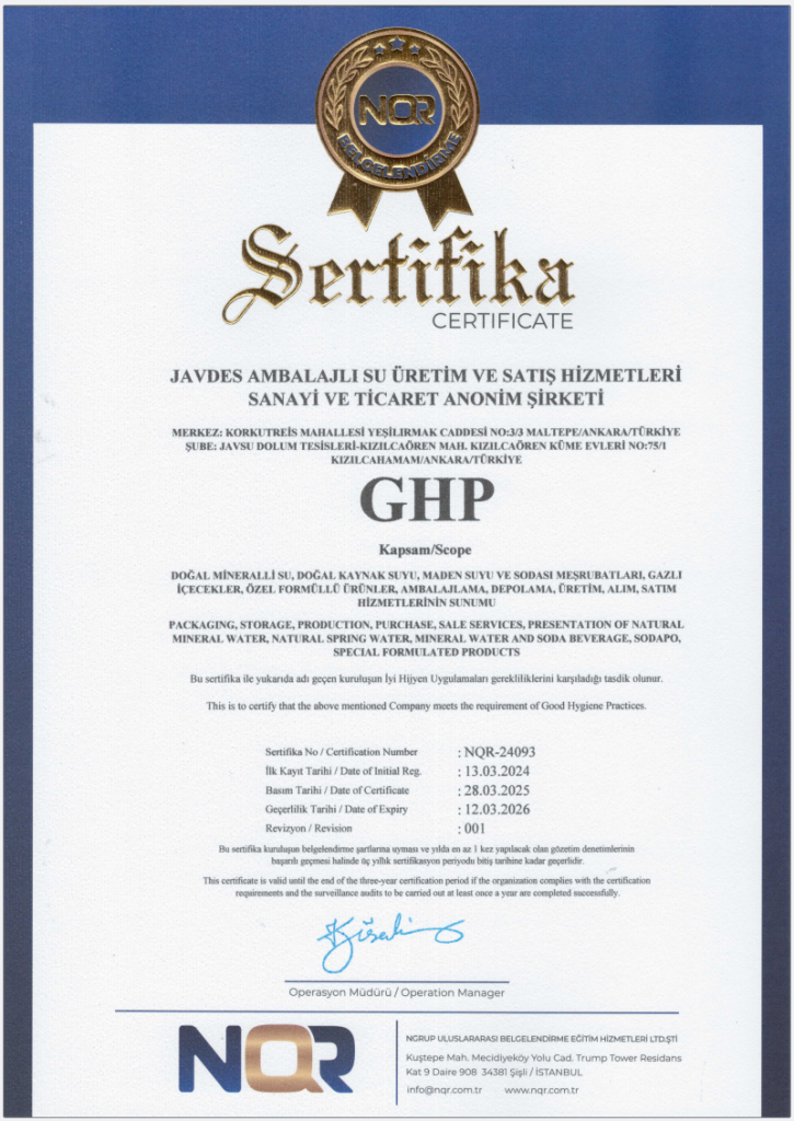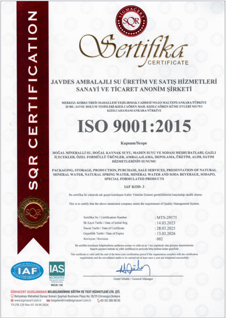 Entegre tesisimizde, filtreleme dışında hiçbir kimyasal işlem uygulamadan üretilen su.